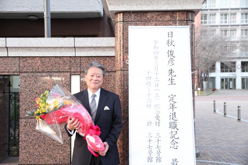 3月12日(土),37号館101教室で日秋俊彦先生の最終講義が行われました。 「生産工学部での37年間 ふりかえりと展望」という演題で最終講義は行われ, オンラインでも配信されました。 対面での参加者と合わせて200人以上の参加者が聴講しました。 なお,日秋先生は引き続き非常勤講師として本学で教壇に立ち, 学生たちを指導をしていただくことになっています。