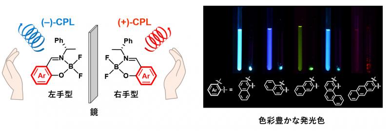 本研究成果は、令和4年(2022年)6月13日(月)に英国王立化学協会誌Physical Chemistry Chemical Physicsにタイトル " Multi-colour circularly polarized luminescence properties of chiral Schiff-base boron difluoride complexes” として掲載されています。