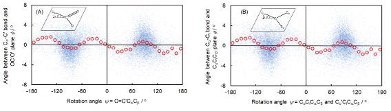 二重結合に結合する元素は、二重結合の元素を含め全て平面上に存在することを有機化学で教わります。しかし、実はある条件で規則的に平面からずれ、三角錐を形成していることが、The Cambridge Crystallographic Data Centre(CCDC)のデータベースを利用して明らかにされました。アミノ酸のカルボン酸の炭素も同様なずれが認められており、この規則的なずれによって天然アミノ酸がなぜL体であるのかを解明するきっかけとなるかもしれません。